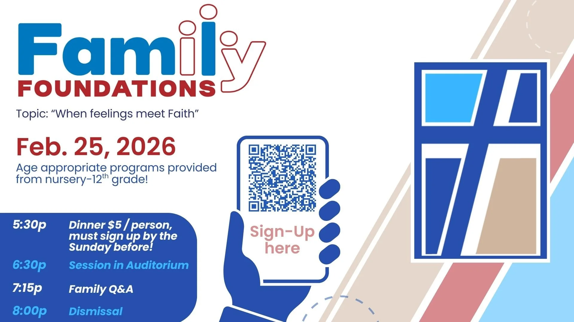 Back to All Events Family Foundations Wednesday, February 25, 2026 5:30 PM 6:30 PM Faith Baptist Church 34950 Little Mack Avenue Clinton Township, MI, 48035 United States (map) Google Calendar ICS Fight for your family The devil is lurking about seeking to destroy your family. Join us Wednesday evening for a meal and sessions on how to keep your family on God’s path of blessing.